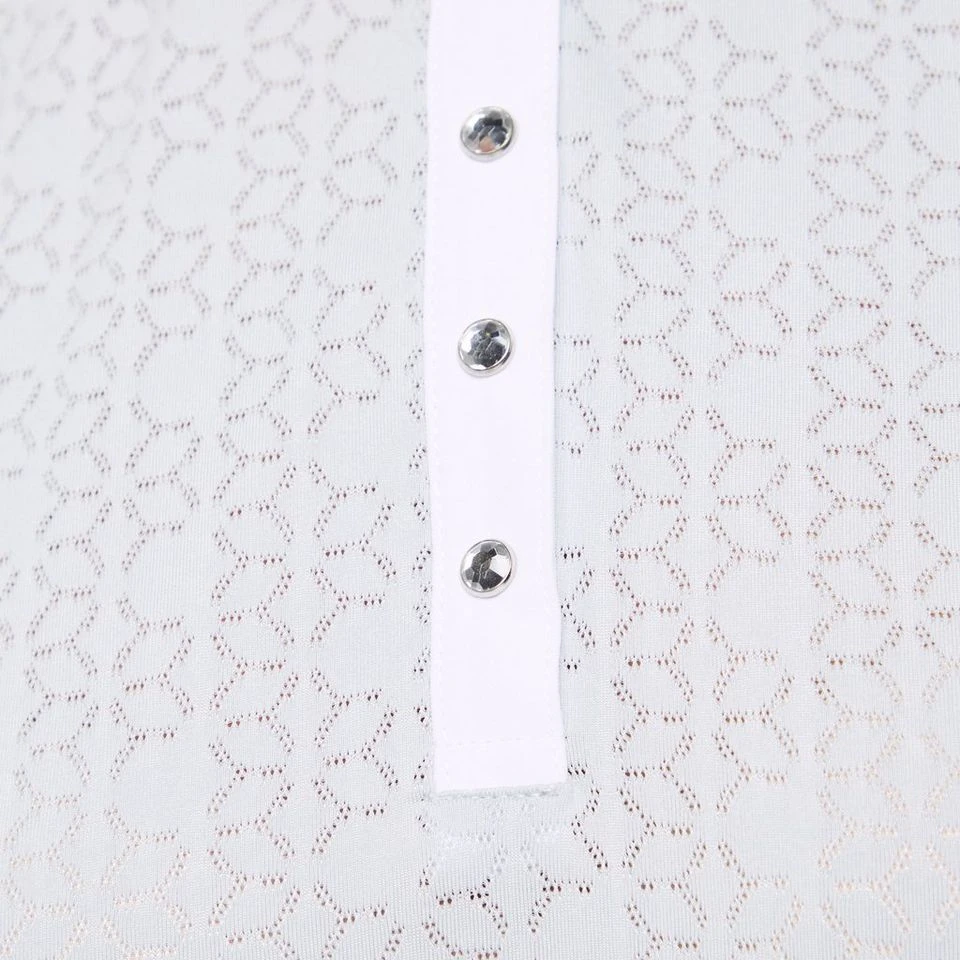 The Showstopper 2.0 riding shirt ensures you stay cool and dry with its Moisture Movement Technology™, while also offering an odour-resistant finish. The shirt’s performance fabric features a beautiful jacquard construction, with the pattern woven into the material to add a touch of class and luxury to any riding outfit. The shirt is further accented with shining rhinestone buttons, so you can sparkle and shine on competition days.