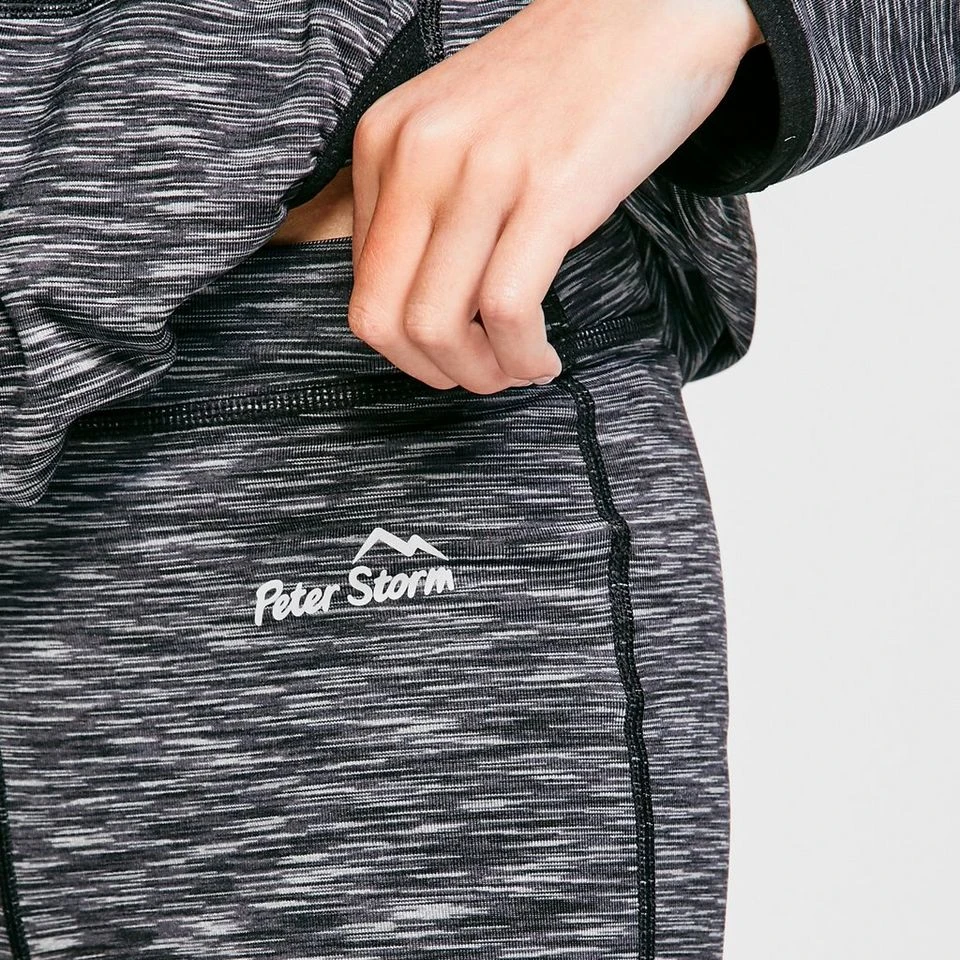 Grey marl leggings with flatlock seams that have the perfect level of stretch for outdoor adventures!