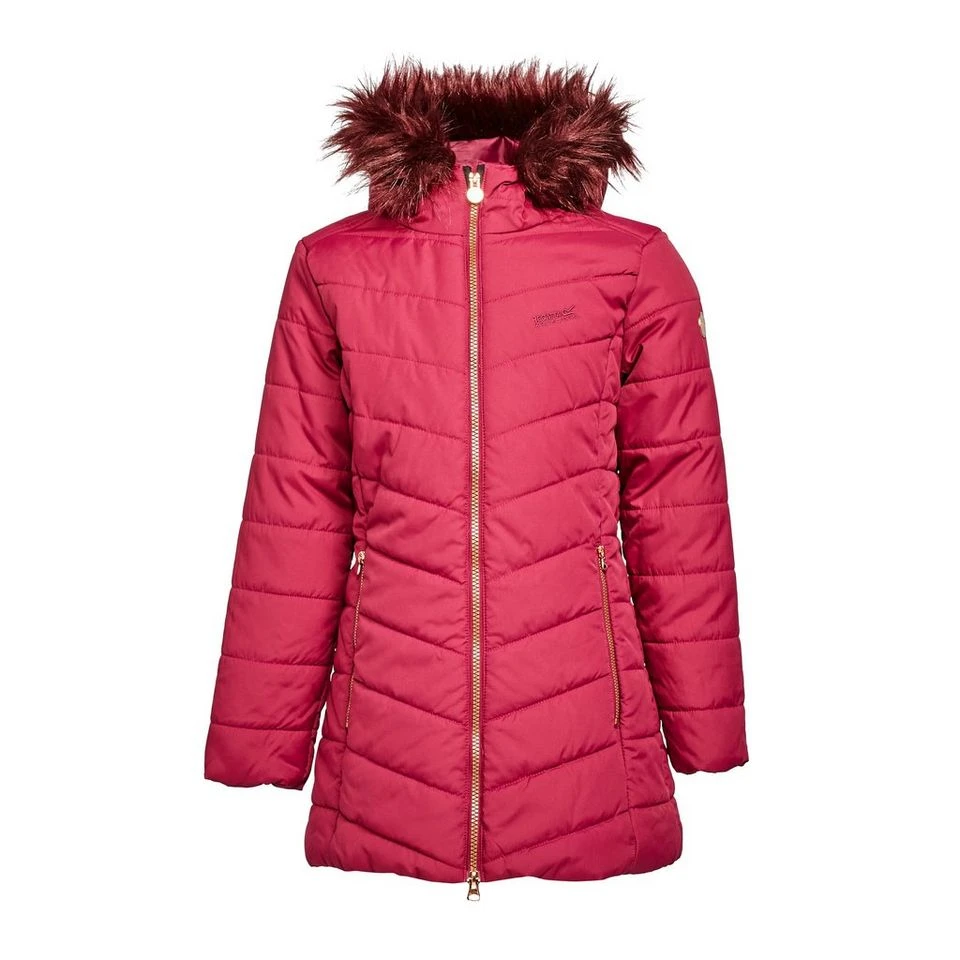 A warm and cosy winter jacket with a fur-trimmed hood for school commutes or weekend walks.