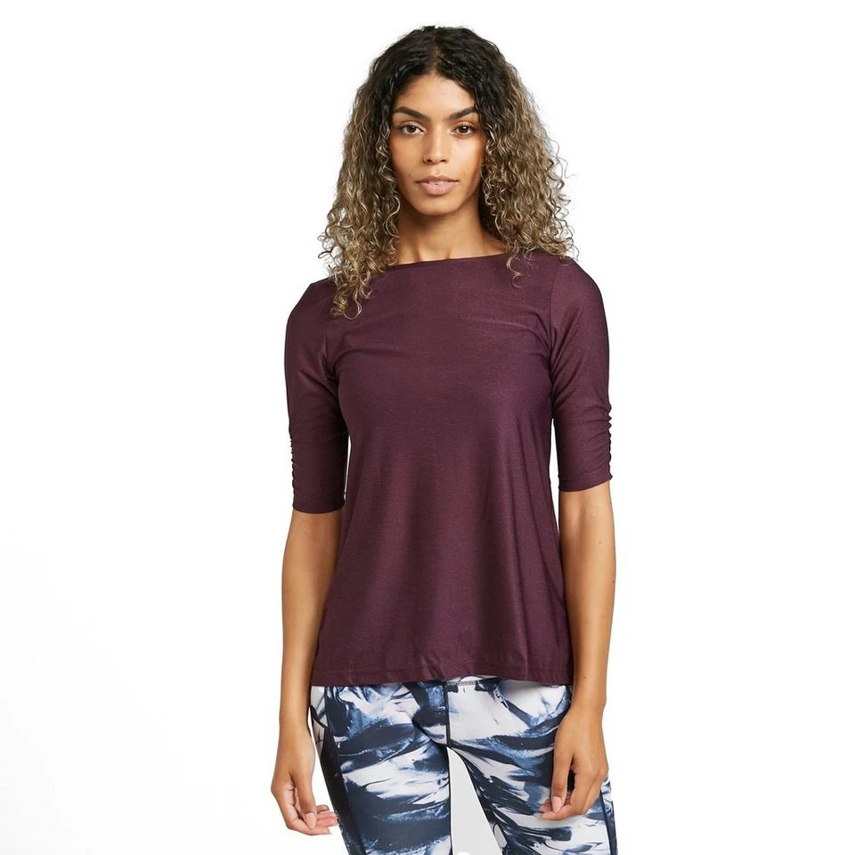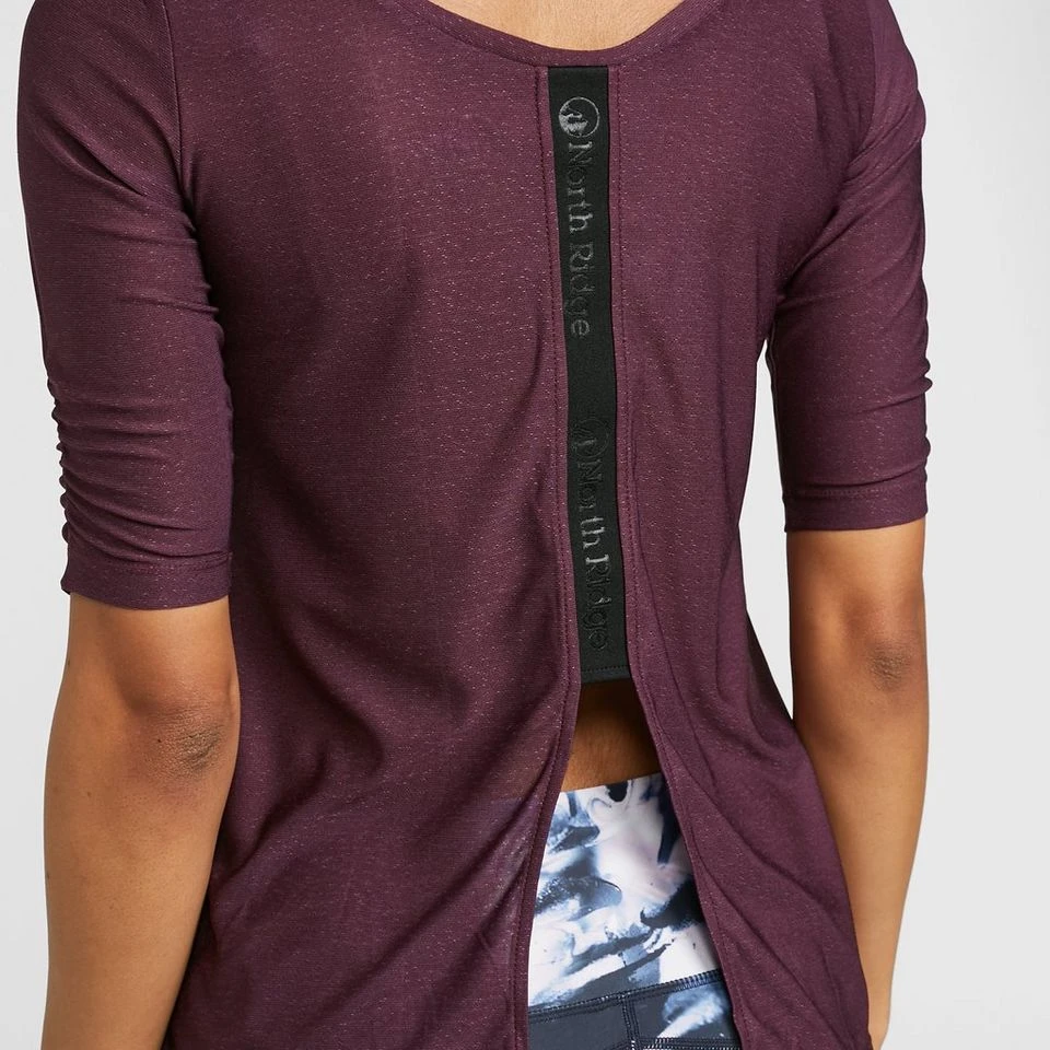 North Ridge’s Sanctuary Half Sleeve Top, with its scooped back neck and split rear, will let you work out in style and comfort.